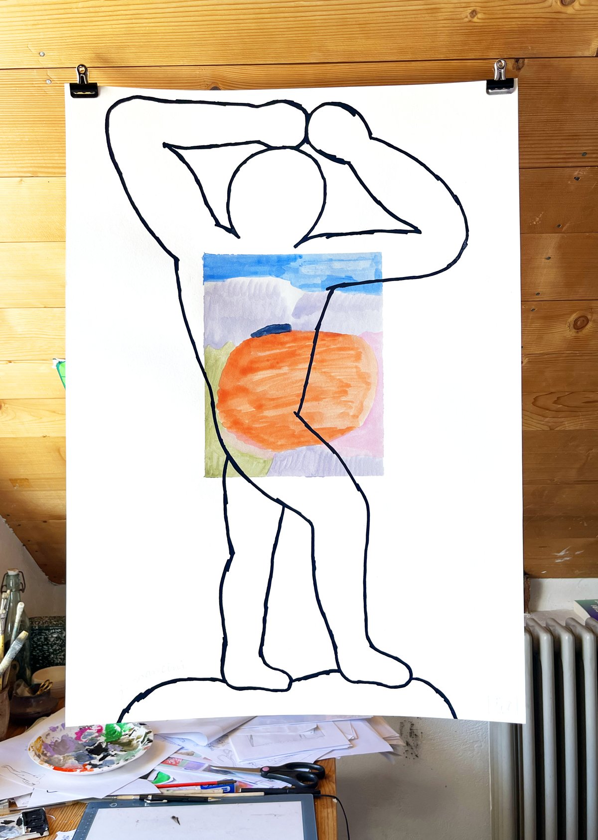Original painting with screen printed body on paper, made in Atelier du Bouc, 2025.