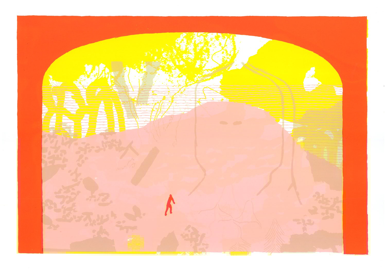 Sérigraphies uniques réalisées avec Fred Fivaz lors d’une résidence de 2 semaines à l’espace Eeeeh! en juin 2025.